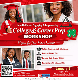 Join us as we partner with the Wilson County 4-H for an engaging and interactive workshop designed to equip teens with the tools, confidence, and knowledge needed to succeed beyond high school. This is a FREE event Registration is requested for headcount. To register, please click here.